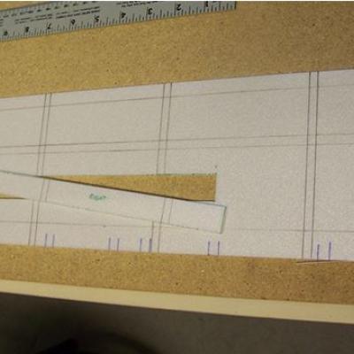On the fuselage sides, lay out the locations for the formers and servo rails with a fine felt-tip pen. Scribe vertical lines on the fuselage sides at the locations indicated on the plans using a dull pencil. This will aid in bending the sides later. Test to see that each crease allows the side to bend approximately 5° without cracking.
