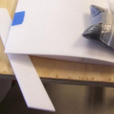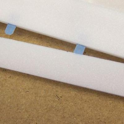 Cut two strips of 6mm x 3/4-inch Depron 20 inches long. It is difficult to cut 6mm foam and maintain a 90° square edge, so after cutting, square up one of the long edges with a sanding block.