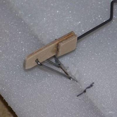 If you are not adding flaps, skip this section. The materials needed for the flap actuator are: .047 music wire, 1/16 plywood, 1/8 plywood, and 1/16-inch ID aluminum tube. Make up the 1/16 and 1/8 plywood flap connector parts as shown on the plans. Fabricate the flap actuator rod as shown on the plans. Make a Z bend in a 5-inch piece of .047 music wire.